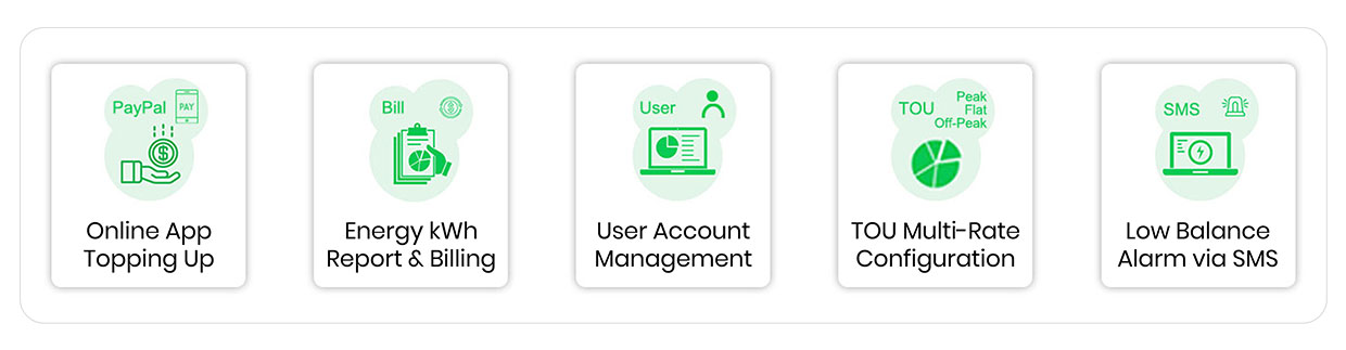 U rješenju za naplatu Acrel IoT EMS, upravitelji objekata postavljaju vršne, izvanvršne i paušalne tarife TOU, provode prepaid ili post-paid načine i definiraju pragove niskog stanja. Nadoplata korisnika putem PayPala, kreditne kartice ili mobilne aplikacije; platforma automatski šalje SMS alarme, izdaje PDF račune i zakazuje udaljeno isključenje s nula kredita. Kontrolne ploče u stvarnom vremenu, podmjerenje stanara i konfigurabilna izvješća o energiji pojednostavljuju usklađenost s ESG-om i raspodjelu troškova.