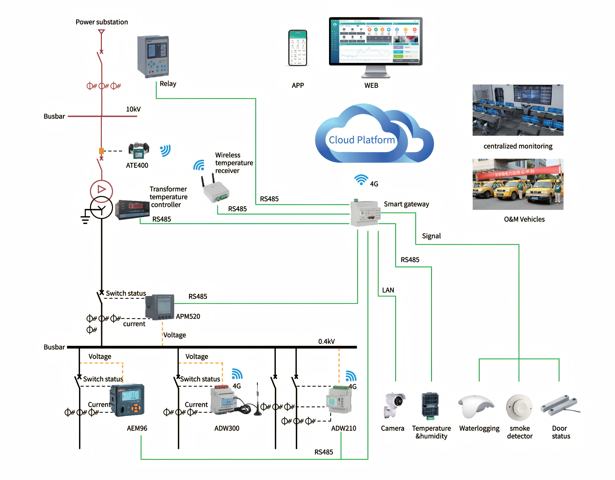Acrel Substation & Distribution Room Solution pruža sveobuhvatnu, cyber-sigurnu digitalnu infrastrukturu za elektroenergetske sustave. Rješenje sadrži zaštitne releje, analizatore kvalitete električne energije i zaštitne releje od bljeska luka za zaštitu kritične energetske opreme. Bežični senzori temperature sabirnice i proizvodi s djelomičnim pražnjenjem omogućuju kontinuirano praćenje ispravnosti sklopnog uređaja.