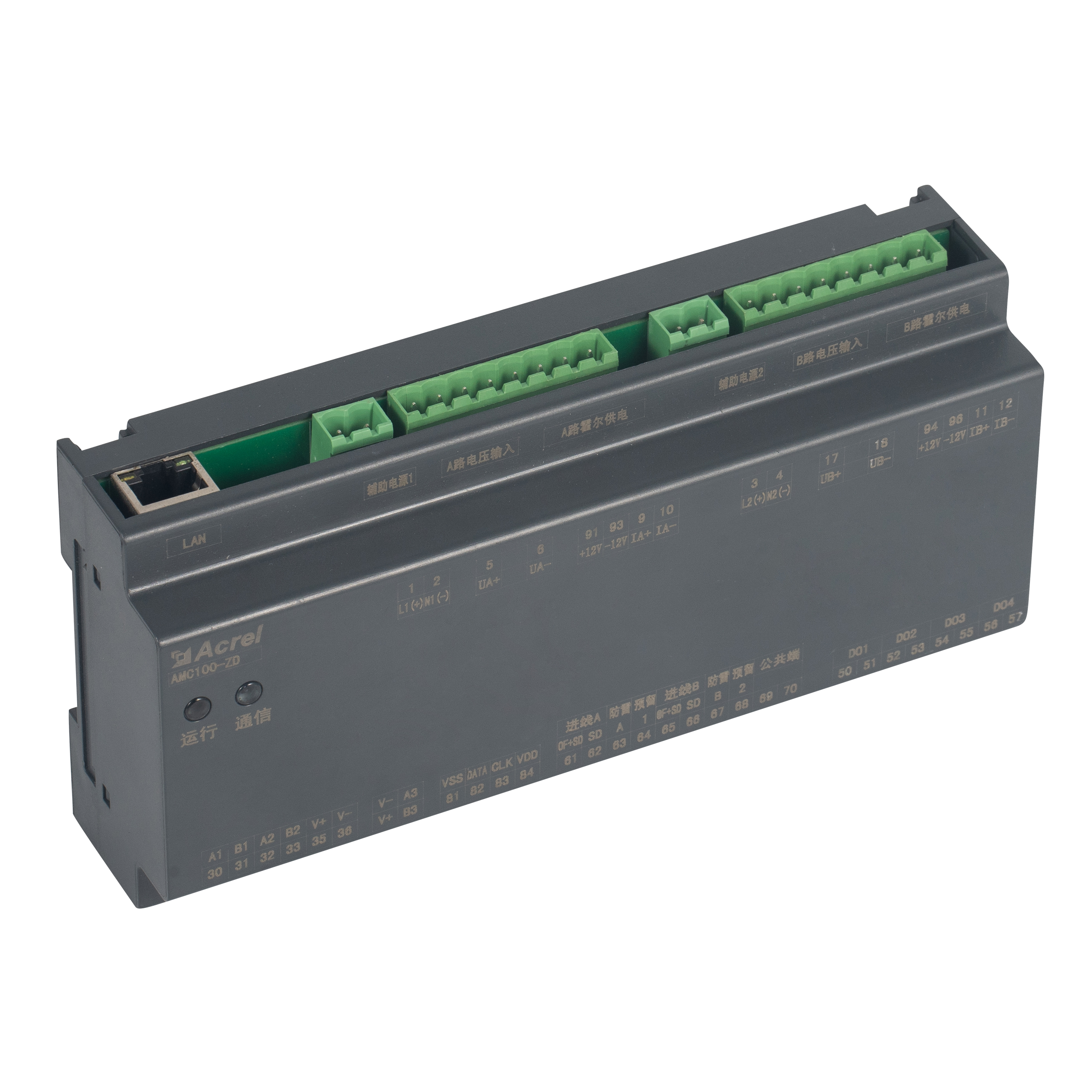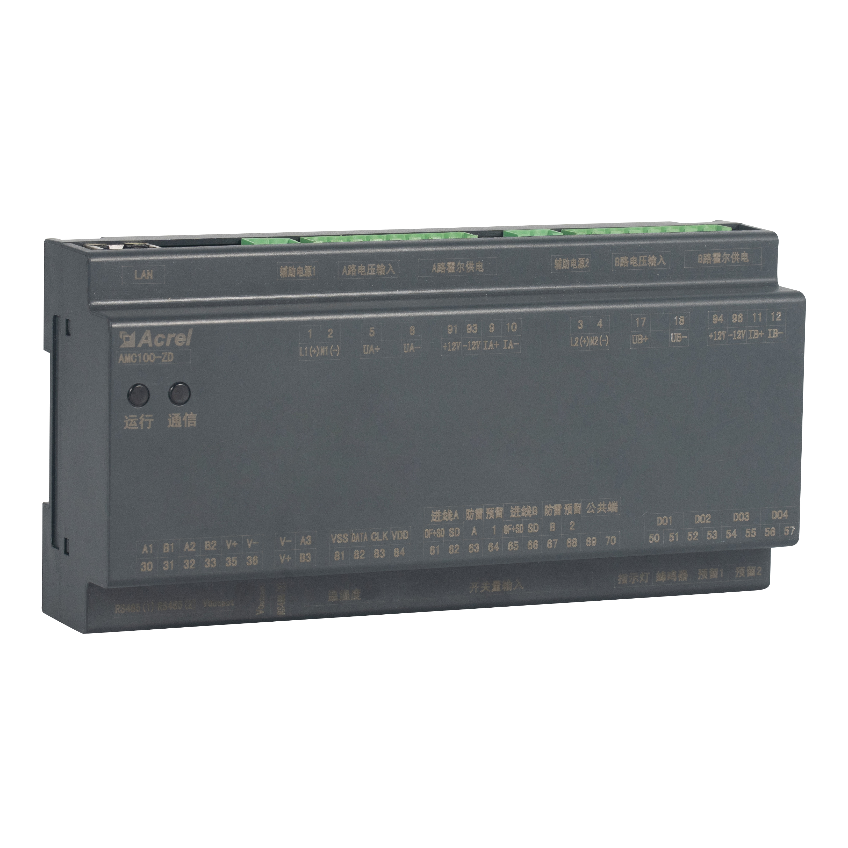 AMC100-ZD je Acrel-ova DIN-šinska precizna DC jedinica za nadzor distribucije energije projektirana za poslužiteljske police podatkovnih centara. Istovremeno prati pune električne parametre A B dvostrukih trofaznih napajanja, 192 izlazna kruga, 8 DI / 4 DO statusnih točaka, 2 kanala curenja, 1 senzor temperature i vlage i 63 harmonika. Tri RS485 Modbus-RTU priključka omogućuju besprijekornu integraciju BMS/DCIM. Kompaktno kućište od 180 mm, točnost ±0,5 %, pragovi alarma po kanalu i trenutna zvučno-svjetlosna upozorenja smanjuju rasipanje energije i zastoje, čineći ga skalabilnim srcem zelenog podatkovnog centra DC busway ili PDU rješenja za nadzor.