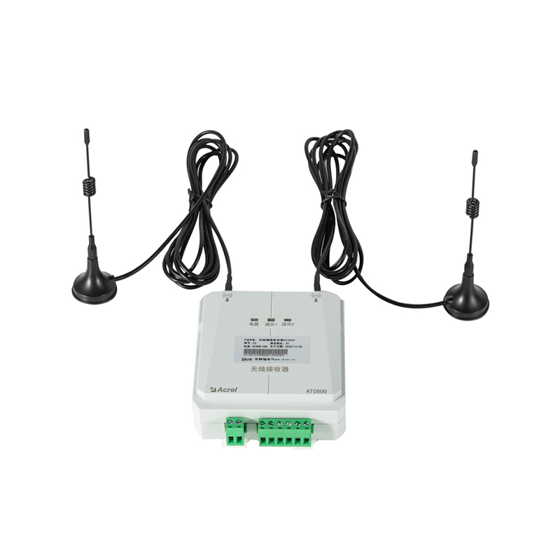 ATC600 je bežični prijemnik za nadzor temperature dizajniran za korištenje u električnim sustavima. Radi na 470MHz i podržava komunikaciju sa senzorima na udaljenosti do 150 metara, te između prijemnika do 1 kilometra na otvorenim područjima. Uređaj može upravljati s do 240 senzorskih točaka i napaja se AC/DC 85–264V. Ima dva pasivna relejna izlaza (5A pri AC250V/DC30V) i podržava RS485 komunikaciju s MODBUS-RTU protokolom, što olakšava integraciju u SCADA ili sustave daljinskog nadzora.